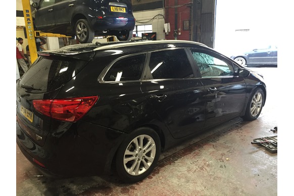 Kia Ceed. This vehicle came in with side impact damage which required straightening out and then panel beating to the doors and quarter panel getting it back to its original shape for a perfect finish for the paint to be sprayed. We painted the whole drivers side and as with all our repairs we use only the best quality paints and materials to return the car body and paint back to its former glory.