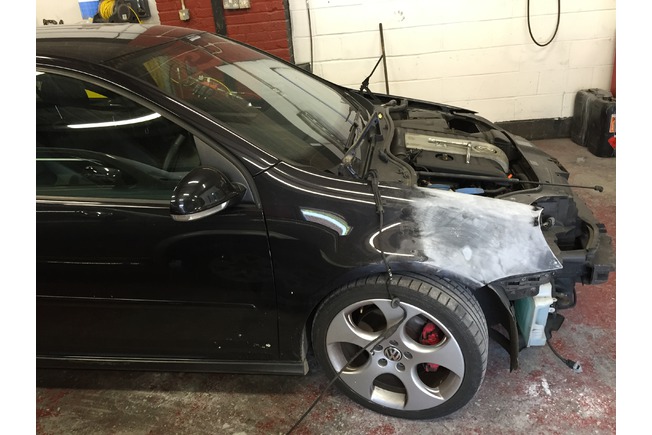 This vehicle came in looking tired and dull. The front end was covered in stone chips from the bonnet, bumper and front wings. The car had some car park dents and the paintwork was faded. The stone chips were sanded down and dents were removed and repaired. The car was given three coats of 2k primer. To finish off, we applied the original factory paint and three coats of lacquer to give it the sparkle it deserves. We then machine polished the whole car. Just look at the end result. The pictures speak for them selves. The car is sitting proudly on its newly refurbished alloys and bright paintwork!!